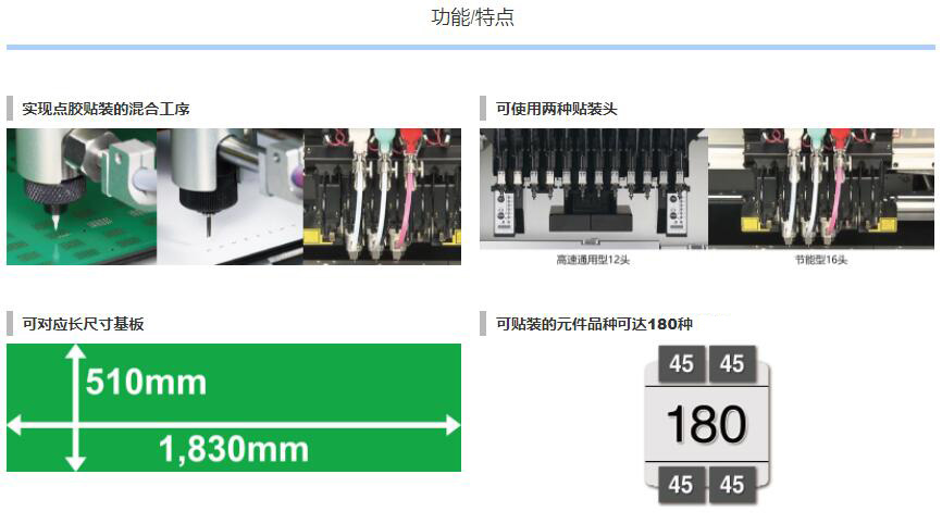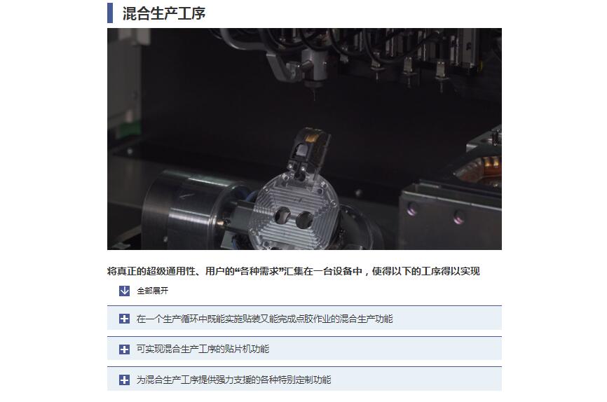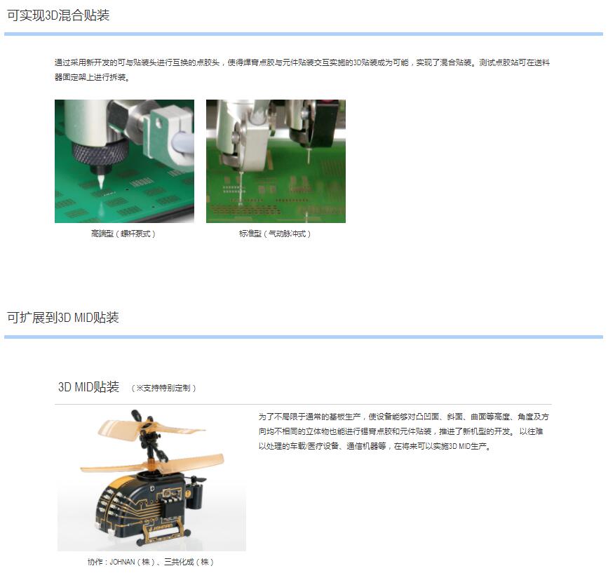 S10/S20 3D混合型模塊貼片機(jī) 1.可進(jìn)行3D MID※貼裝,實(shí)現(xiàn)極致的通用性。2.可擴(kuò)展到貼裝3D MID。3.強(qiáng)化基板應(yīng)對(duì)能力。4.靈活的元件/ 品種應(yīng)對(duì)能力。5.通用性極強(qiáng)的可切換性。※3D MID:三維模塑互連器件=Molded Interconnect Device