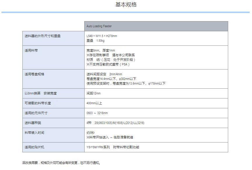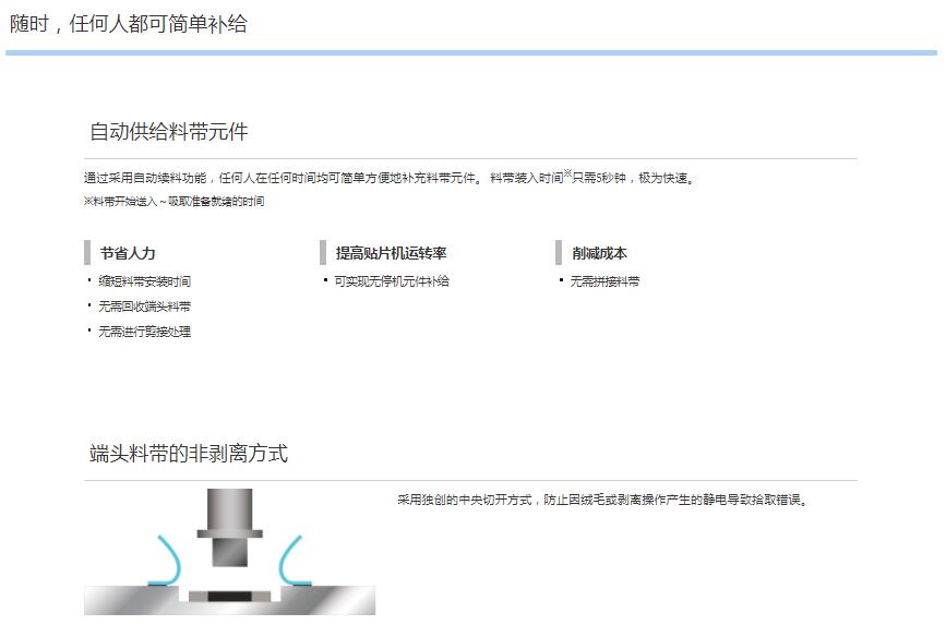 Auto Loading Feeder 1.元件供料的革新2.自動供應料帶元件3.卓越的操作性
