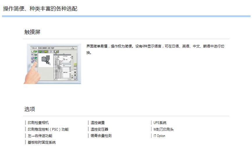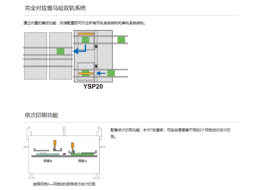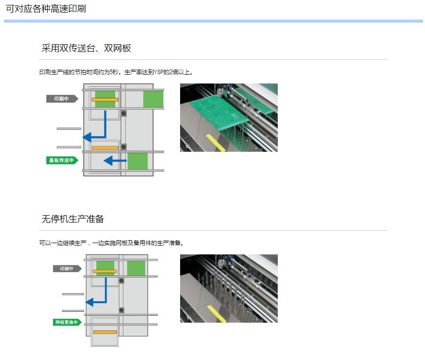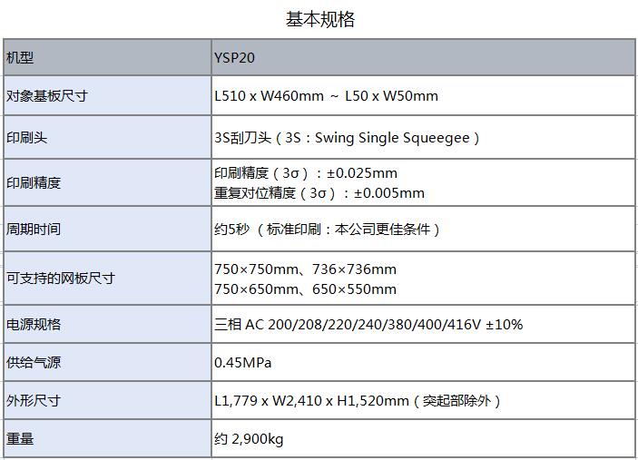 YSP20印刷機1.采用Dual stage、Dual mask。2.實現了超常“高速”、“多功能性”。3.超高速印刷性能5sec/cycle。4.重復對位精度3σ:±0.005mm。5.支持大型基板L510 x W460mm。6.前后網板尺寸更大可達750×750mm。